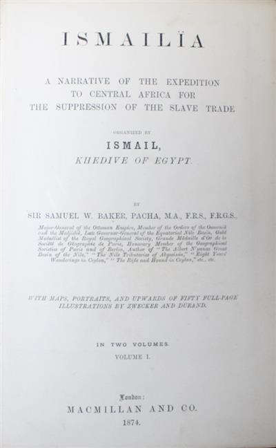 Ismailïa: A Narrative of the Expedition to Central Africa for the Suppression of the Slave Trade organized by Ismail, Khedive of Egypt. Vol. I-II