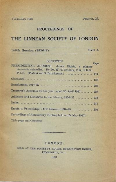 Proceedings of the Linnean Society of London 149th Session (4). Bound with other papers.