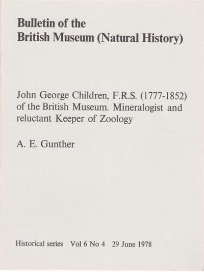 John George Children,F.R.S. (1777-1852) of the British Museum. Mineralogist and reluctant Keeper of Zoology