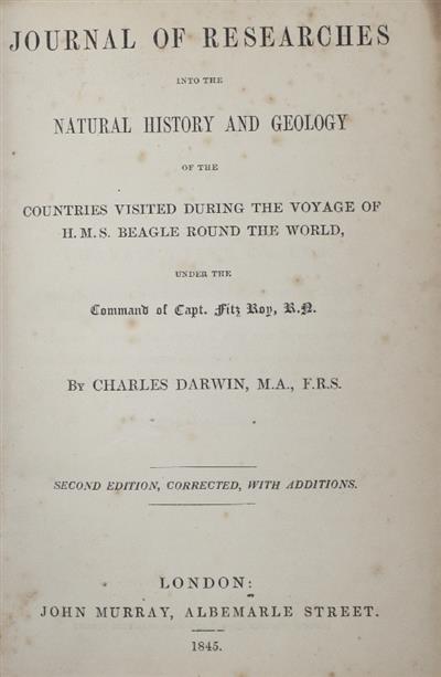 Second edition, corrected, with additions. Taken from Darwin's journals while on the H.M.S. Beagle, these notes form a background for ideas he would later develop in On the Origin of Species, while also serving as an excellent travel narrative of the voyage around South America, New Zealand, and Australia, as well as the famous survey of the Galapagos Islands.
