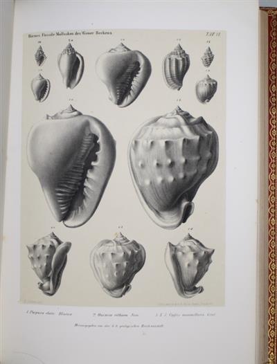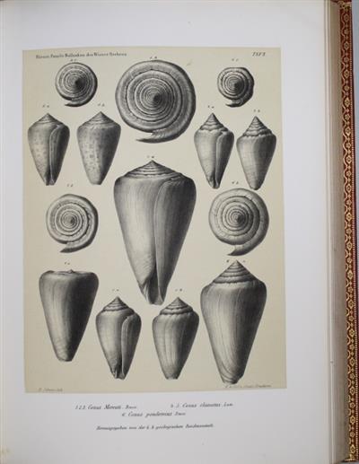 Abhandlungen Vol. I-III (1852-1856), large 4to, illustrated by many fine lithographic plates (some tinted): Vol. I (1852) and Vol. II (1855) contain a number of major contributions on the Geology, Palaeozoology and Palaeobotany of Austria-Hungary, including articles by Constantin Ettingshausen on fossil flora of Central Europe; Vol. III (1856) contains a single work - 'Die Fossilen Mollusken des Tertiaer-Beckens von Wien. Vol. I. Univalven' by Moriz Hörnes.