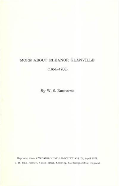 A short biographical paper, More About Eleanor Glanville by W.S. Bristoew, reprinted from Entomologist's Gazette Vol. 26 1975 loosely inserted.