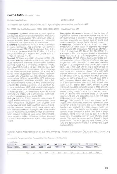 Bilingual English/Finnish. This final volume covers larvae of tribes Noctuini and Agrotini, and includes additions to vols 1+2.
