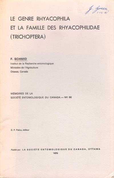 - Publisher : Société Entomologique du Canada