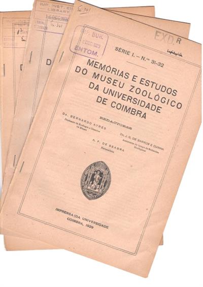 Text Portuguese. Memorias e Estudos do Museu Zoologico da Universidade de Coimbra, Ser. I, Nos 32,40,51