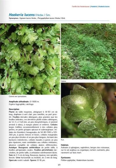 Each of the 285 species is the subject of an illustrated monograph, including a detailed morphological description, including the microscopic criteria essential for diagnosis, the distribution in France, the habitats and the companion species. With more than 2,200 photographs, this very complete guide is a valuable tool for the study of bryophytes.