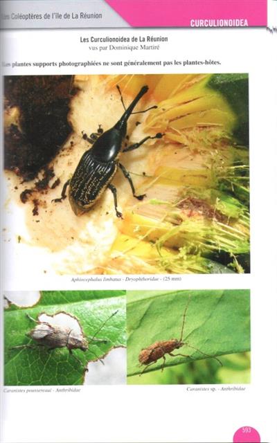 Text French. Includes both the endemic beetles of Reunion, which are found in the primary forests of the National Park, and the exotic species, which have been accidentally introduced as hidden passengers on boats, which are found in all the island ecosystems.