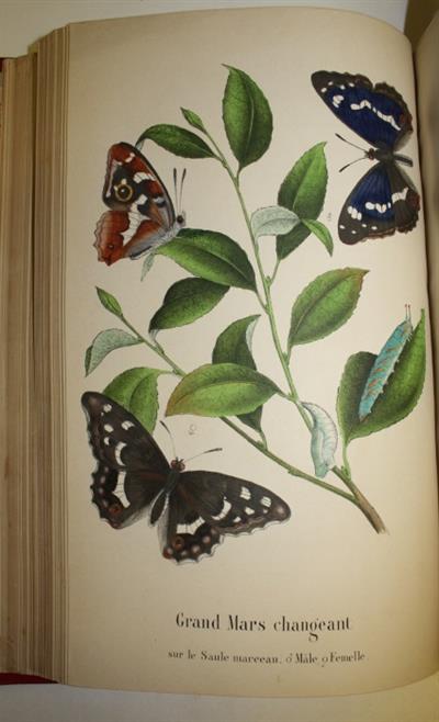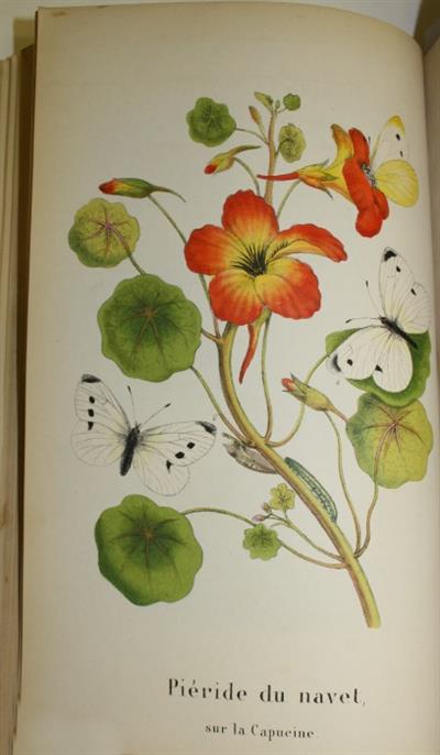 Text French. First and only edition. A beautifully illustrated work on the Lepidoptera (butterflies and moths) of Belgium. The work was initiated by Belgian naturalist Charles Frédéric Dubois (1804-1867) and, following his death, completed by his son, Alphonse Joseph Charles Dubois (1839-1921). The text is in French, with finely detailed illustrations drawn from life by Alphonse, who also lithographed the plates.They illustrate the adult insect with its immature stages depicted on the larval foodplant. A scarce work as it was published in a short print run.