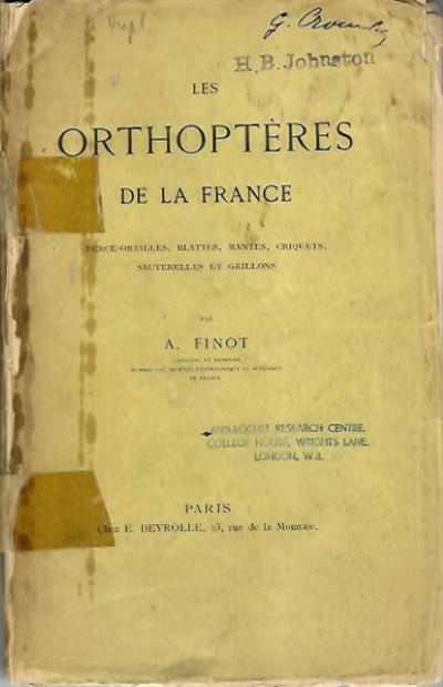 8vo, orig. wrappers, soiled, very worn, front wrapper detached, spine taped, stitching broken, sections separating. From the library of orthopterist, H.B. Johnston, with his ownership stamp.