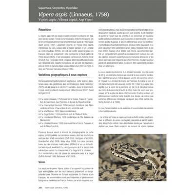 Text French. Covers in detail the 32 protected species which are found in the Pyrenees (France, Spain and Andorra). This herpetological fauna combines a literature survey and photographic report. It offers a summary of data on systematics, taxonomy, biogeography, ecology, biology, etc., hitherto scattered throughout the literature. The variation and ecological characteristics of snakes, lizards and turtles occurring in the Pyrennees region are illustrated by numerous photos taken in the field. Includes accurate distribution maps (10x10km).