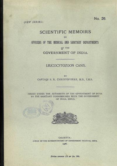 Scientific Memoirs by Officers of the Medical and Sanitary Departments of the Government of India. No 26 Samuel Rickard Christophers (1873-1978) was described as one of the great pioneers of Medical Entomology, 'to rank equally with his famous peers, Sir Patrick Manson, F.R.S., and Sir Ronald Ross'. H. E.Shortt; P. C. C. Garnham (1979).