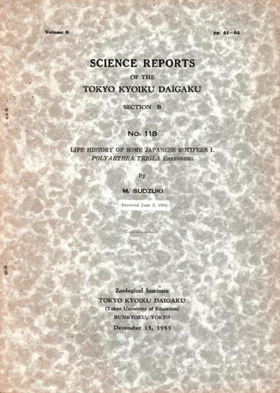 Text English. Science Reports of the Tokyo Kyoiku Daigaku Section B. Vol.8 No.118
