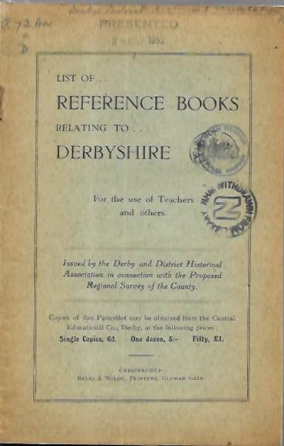 List of Reference Books Relating to Derbyshire: For the use of Teachers and others