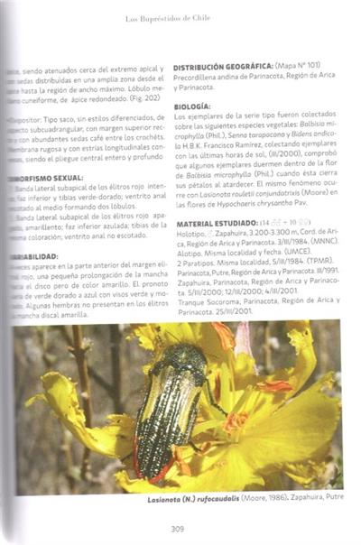 Contains the original scientific descriptions and a complete update of the Buprestidae family in Chile in 2015; each species is illustrated in high quality, with distribution maps. Allows easy identification of each species.