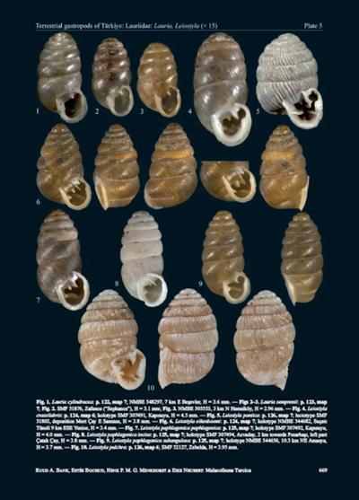 2 vols (Vol. I: Text, Vol. II: Atlas). This book presents a state-of-the-art overview of the terrestrial malacofauna of Türkiye. It compiles the knowledge on Turkish land snails accumulated by numerous scientists since Linnaeus up till 2023. It covers 734 taxa at (sub)species level, distributed over 188 genera belonging to 43 families. 65 % of the terrestrial snails are endemic to the country. Over 2,600 colour photos illustrate all shelled gastropods, many of which are represented by their type specimens. Anatomical drawings of all slug species are incorporated in the text. In addition, 121 highly detailed distribution maps based on 3,300 localities are supplied. The reference list contains more than 2,700 entries, not only on Türkiye but also covers large parts of the Near and Middle East. The book aims to serve as a basis for identifying Türkiye's terrestrial malacodiversity, recognising structural changes and taking appropriate measures for nature and habitat conservation.