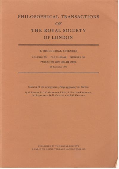 Malaria of the Orang-utan (Pongo pygmaeus) in Borneo