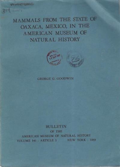 Mammals from the State of Oaxaca, Mexico, in the American Museum of Natural History