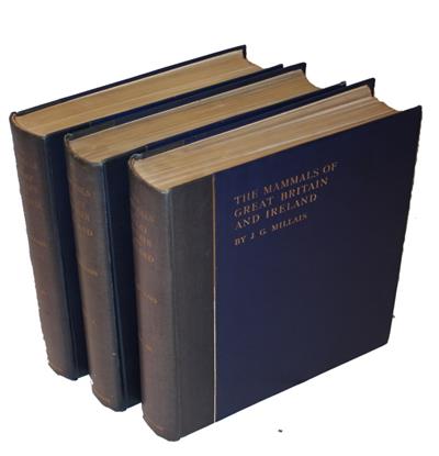 First edition, limited to 1025 numbered copies, this set being number 781. Titles in red and black. Colour plates (some chromolithographs) and photogravures by J.G. Millais, H. Grönvold, Archibald Thorburn and G.E. Lodge, uncoloured plates by the author and from photographs. A book review of the first volume published in 'Nature' 1904 stated ‘In two important features this magnificent work, …..may lay claim to special pre-eminence. First, the illustrations, alike in number, size, truthfulness to nature, and artistic excellence, are unrivalled; and secondly, as regards the main and most important part of the subject, namely, the habits and local distribution of the various species, the work is in no sense a compilation, but the result of long and patient personal observation on the part of the author.'