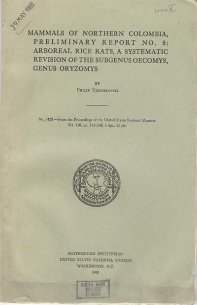 Mammals of Northern Colombia Preliminary Report No. 8: Arboreal Rice Rats, A Systematic Revision of the Subgenus Oecomys, Genus Oryzomys
