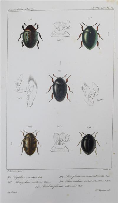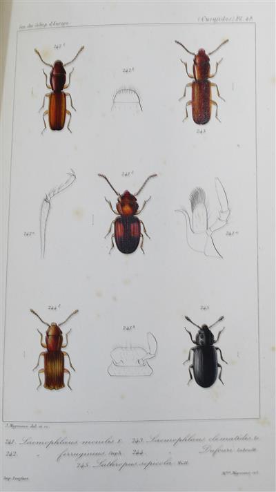 Part of Vol. II only, comprising 25 familes: Histérides - Hétérocérides (pp. 97-285, [2], plates 29-67) (lacking the first section on Staphylinides). Fine engraved hand-coloured plates by J. Migneaux, finished with gum arabic. [The complete work consists of 4 volumes (1854-1868)].