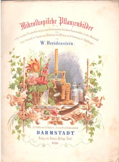 1st edition. Rare. Plates show microscopical plant cells, within a black circular background, as viewed through a microscope eyepiece.
