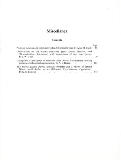 Other titles from the series : Bulletin of The Natural History Museum: Zoology
