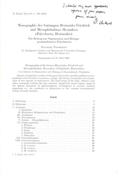 Monographie der Gattungen Hesionides Friedrich und Microphthalmus Mecznikow (Polychaeta, Hesionidae)