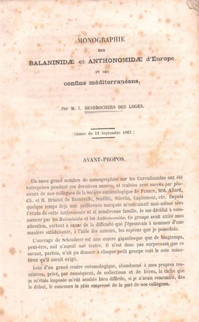 Monographie des Balaninidæ et Anthonomidæ d'Europe et des confins meditérranéens