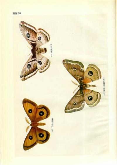 Second impression (first published 1973). Text Chinese. Includes 669 species. Chinese and Latin names, descriptions of adults and larvae and information on distrubition, both in China and the rest of the World, with a colour illustration of each.