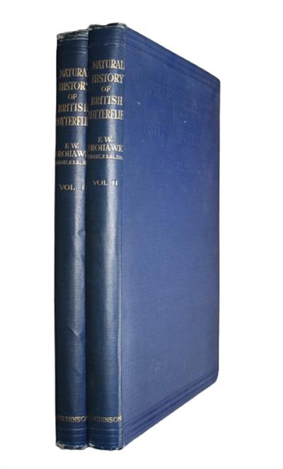 A classic work based on the author's original observations, illustrating the life stages of all British Butterflies for the first time. Preface is dated 1914, but publication was delayed until after the First World War. F.W. Frohawk (1861-1946) is considered by many to be the finest British butterfly illustrator of all times. Frohawk was the first person to rear every British species of Lepidoptera from eggs to adult (Marren, Rainbow Dust, p.181). The result of this remarkable achievement was the 'Natural History of British Butterflies' (1924), a magisterial two-volume folio work, illustrated with his unrivalled life-size colour drawings of butterflies and their early stages. Its colour plates are the first complete record of all the life stages of British butterflies, together with the habits, times of appearance, and localities. This classic butterfly book took a quarter-century to compile. Although the preface is dated 1914, publication was delayed until after the First World War, as Peter Marren notes: at long last, in 1914, and the age of fifty-three, he had completed the last painting, written the last line, and sent the great work off to his publishers, war was declared. [ ] wartime paper shortages made publication impossible. By the time the war was over people had other things on their minds: publication was delayed a further six years until 1924. (Rainbow Dust, p.185).