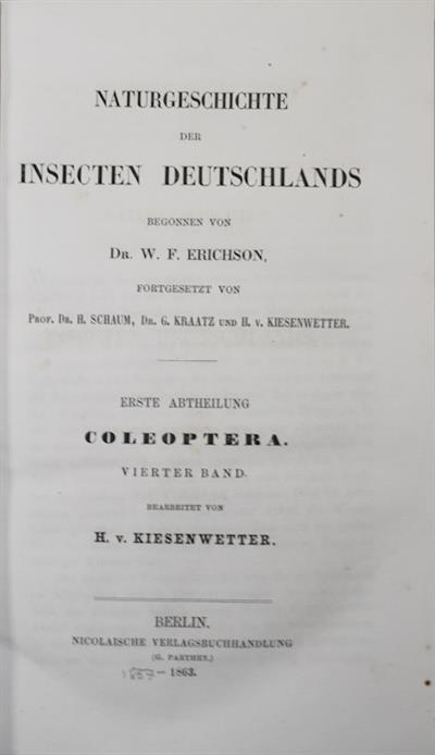 Naturgeschichte der Insecten Deutschlands begonnen von Dr. W.F. Erichson. 1. Abt. Coleoptera. Bd 4