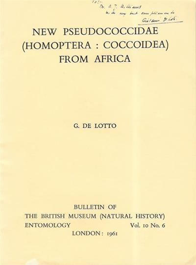 New Pseudococcidae (Homoptera: Coccoidea) from Africa