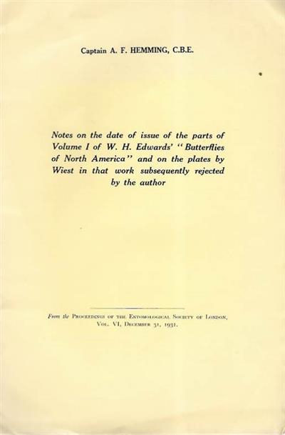 Notes on the date of issue of the parts of W.H. Edwards "Butterflies of North America" and on the plates by Weist in that work subsequently rejected by the author