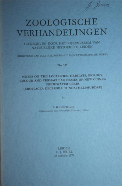 Notes on the Localities, Habitats, Biology, colour and vernacular names of New Guinea Freshwater Crabs (Crustacea Decapoda, Sundathelphusidae)