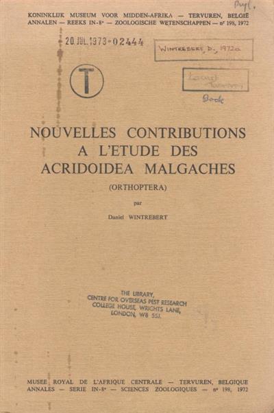 Nouvelles Contributions a L'etude des Acridoidea Malgaches (Orthoptera)