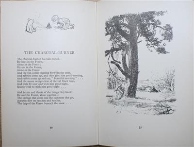 First edition. This charming collection marks A.A. Milne’s second book of nursery verses, introducing readers to a playful and nostalgic world of childhood adventures. The beloved character Pooh features in several poems. Delightful poems include: 'King John's Christmas', 'Sneezles', 'Us Two', and 'Twice Times'. The concluding poem, 'The End' poignantly reflects the timeless spirit of childhood noting 'But now I am six, I’m as clever as clever. So I think I’ll be six now for ever and ever'.Illustrated with delightful line drawings by Ernest H. Shepard, capturing Christopher Robin, Pooh, Piglet, and their friends.