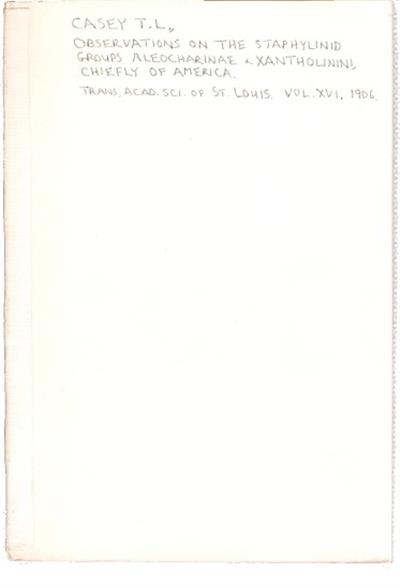 Observations on the Staphylinid Groups Aleocharinae and Xantholinini chiefly of America