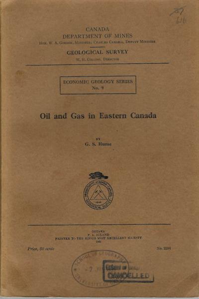 Canada Department of Mines, Geological Survey, Economic Geology Series No. 9.