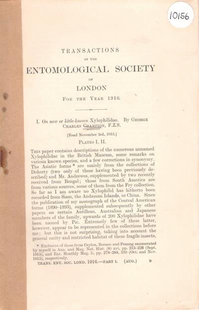 Transactions of the Entomological Society of London 1916, Part 1 (Aug)
