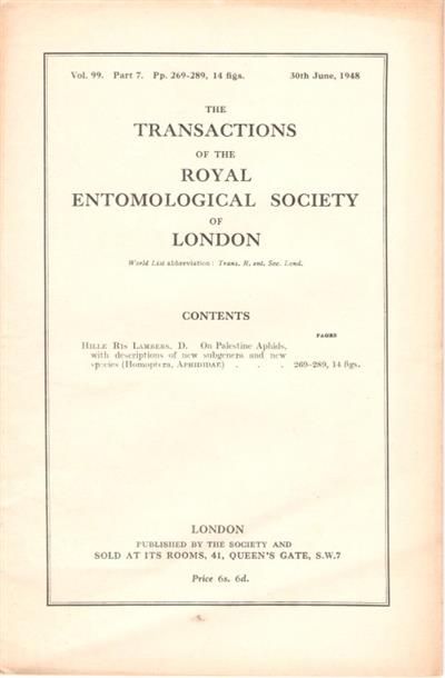 On Palestinian Aphids, with Descriptions of New Subgenera and New Species (Homoptera, Aphididae)