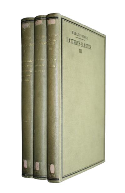First edition. Text Danish. Complete in 3 volumes, I: Monotremata, Marsupialia, Insectivora, Chiroptera, Edentata; II: Rodentia, Carnivora, Primates; III: Ungulata, Cetacea. A critical revision and systematic study of mammals, based largely on the extensive collections at the Zoological Museum of the University of Copenhagen, where Herluf Winge worked. The third volume was published posthumously from the author's completed manuscript.