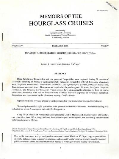 Memoirs of the Hourglass Cruises Vol. 5, Part IV. Specimens were caught on Florida's west central shelf.