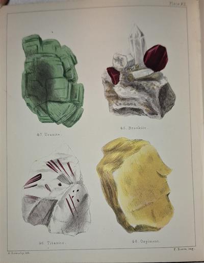 First edition. Very scarce. Fine hand-coloured lithographic plates by the author, depicting 80 mineral specimens. In the preface it states 'The plates, executed by myself in lithography, represent the first attempt that has been made to illustrate minerals by that process'. Henry Sowerby (1825-1891) was an English mining expert and draughtsman, a member of a famous family of illustrators. From 1843 to 1852 he was an assistant librarian to the Linnean Society of London, he emigrated to Australia in 1854, where he thought there would be better prospects. For the last twenty years of his life he devoted himself to gold mining.