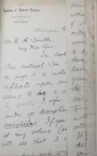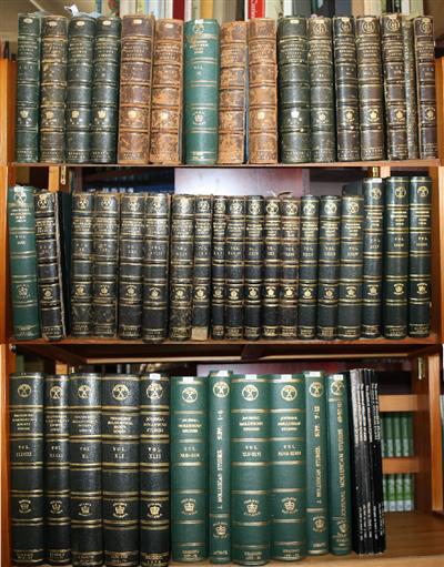 49 vols + 12 Supplements bound in 46, 8vo, mixed bindings: 38 in half leather, some vols scuffed/worn, with loss to foot of one spine, 5 vols with joints split, some boards detached, 1 spine loose, Vol. I front inner hinge broken; 8 vols in later green buckram. Withdrawn from an institutional library with ink stamps. Bound in with Vol. I are several contemporary mansuscript letters to Edgar A. Smith (1847-1916), British malacologist and assistant keeper of Zoology in the British Museum between 1867 and 1913. One letter from American malacologist, Henry Augustus Pilsbry (1862-1957) of the Academy of Natural Sciences, Philadelphia, dated May 25th 1894, is in response to an editorial protest on p. 11 of Vol. I, concerning right of priority of description of a species, described and illustrated there by Smith. A type specimen had been left with Pilsbry by Smith on a visit to the United States while this paper was in press and Pilsbury had included the species in one of his publications before Smith's description had been published! He is not named, but referred to as, 'a well-known conchologist'.