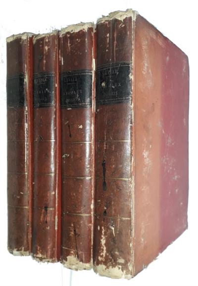 4 vols, 4to (283x215mm), orig. paper covered boards, heavily rubbed/worn, spines chipped, gilt rules and leather title labels to spines; wide margins with edges uncut; some foxing and browning, a few short marginal tears; one folding plate damaged - creased and torn with loss to several figures; 6cm tear to inner margin of another large folding plate.