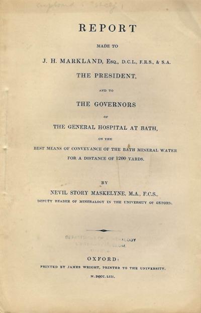 Report made to J.H. Markland, the President, and to the Governors of the General Hospital at Bath on the Best Means of Conveyance of the Bath Mineral Water for a Distance of 1200 Yards