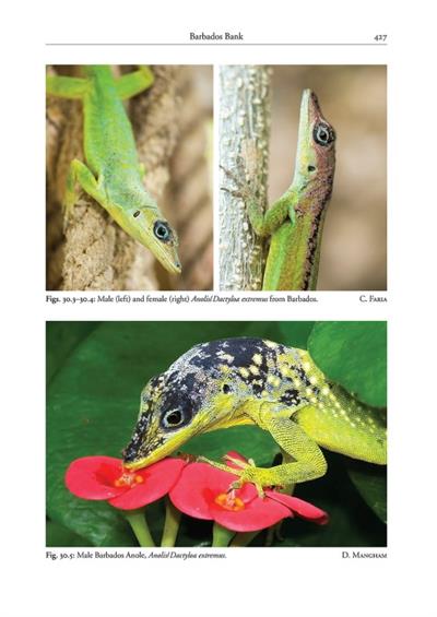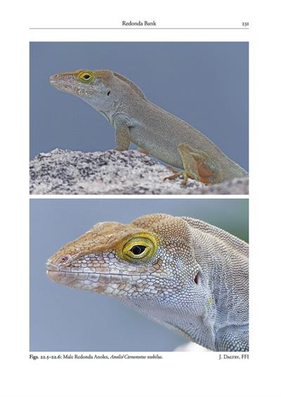 This book covers the reptiles of the Lesser Antillean archipelago, from Sombrero in the north down to the Grenada bank in the south. The book is divided into five sections: 1) Introduction, 2) Taxa, 3) Island Banks, 4) Biogeography and 5) Conservation. The taxa are considered in an arbitrary sequence: anoles, iguanas, curlytails, skinks, teiids, microteiids, dwarf geckos, larger geckos, anguids and amphisbaenids, blindsnakes and threadsnakes, boas, pit vipers, colubrids, chelonids and crocodilians. Widespread species are described in this section rather than repeatedly in the Island Banks section. In the latter section each of the island banks are considered from north to south (Sombrero, Anguilla Bank, Saba, St. Kitts Bank, Antigua Bank, Redonda, Montserrat, Guadeloupe Bank, Marie-Galante, Les Saintes, Dominica, Martinique Bank, St. Lucia Bank, Barbados, St. Vincent Bank, Grenada Bank–Grenadines, Grenada Bank–Grenada). The Grenadines and Grenada plus satellites are treated in separate chapters. The taxa in this section are dealt with in the same order as the Taxa section, and, where appropriate, the sometimes considerable variation that occurs within an island species is illustrated and explained. The intention is that the chapter on each island bank could act as a field guide, with identification aided by the numerous images. Each island bank chapter can be used independently and includes images of every native and introduced species found on each bank. For native species/radiations, an attempt has been made to allocate the source of colonization as either the Greater Antilles or the main-land. Our understanding of Lesser Antillean reptiles and their conservation is rapidly changing. Ongoing conservation threats like hybridization (e.g., iguanas) and recent invasive species (e.g., Anolis/Ctenonotus cristatellus in Dominica) can rapidly change the situation. Molecular phylogeny and major taxonomic revisions, such as the revision of skinks (Hedges & Conn 2012), dramatically change our understanding of the relationships, biogeography and nomenclature.