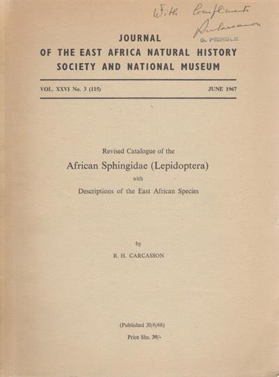 Revised Catalogue of the African Sphingidae (Lepidoptera) with Descriptions of the East African Species