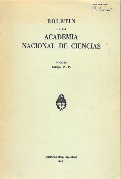 Text Spanish with Synopsis in English. Boletin de la Academia Nacional de Ciencias 55(1-4).