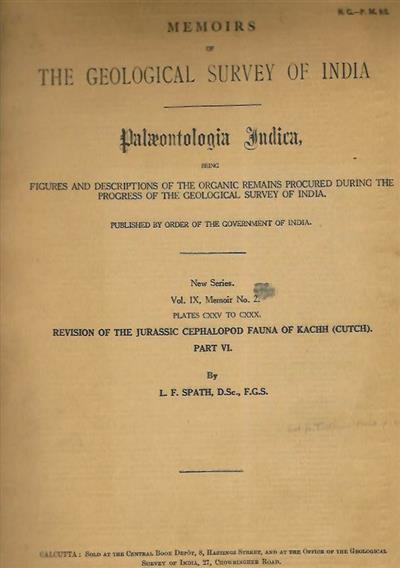 A scarce classic monograph on the fossil cephalopods (ammonites, belemnites and nautili) from the western Indian province of Kutch (Kachchh, Kachh), published in Palaeontologia Indica, New Series, Vol. IX, No. 2. Good quality collotype plates, printed by Zinco Collotype Co., Edinburgh. Leonard Frank Spath (1882-1957) was a British geologist specialising in malacology and ammonites, He was an assistant curator at the British Museum (Natural History). He was elected as a Fellow of the Royal Society, London in 1940 and his certificate of election refers to this 'important' work.
